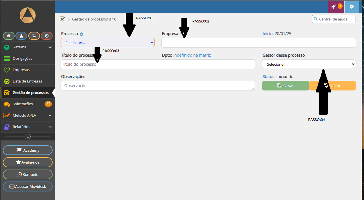 4. Passo 04: O responsável pelo processo será, automaticamente, quem está abrindo a solicitação, ou seja, você.