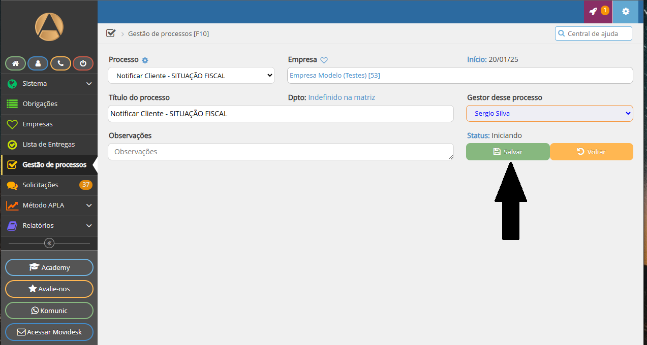 Outro ponto importante é que, ao emitir uma nova situação fiscal, o setor Fiscal deve sempre consultar o prontuário da empresa para verificar se a notificação já foi tratada. Caso positivo, o fiscal não deve abrir uma nova solicitação, pois o cliente já está ciente da situação e, por algum motivo, optou por não resolver o problema.