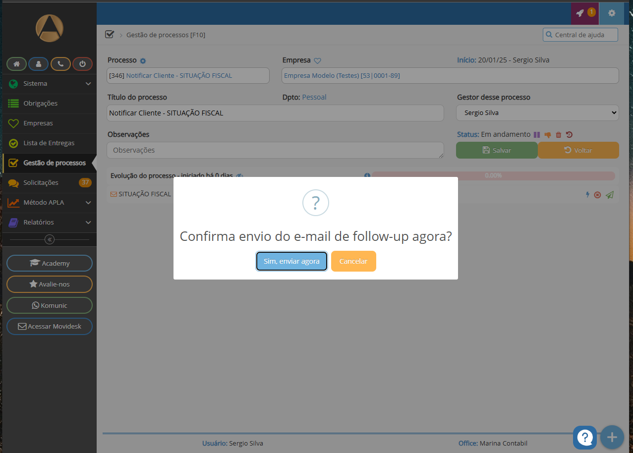 Clique em Sim, Enviar Agora para confirmar, e o processo estará concluído.