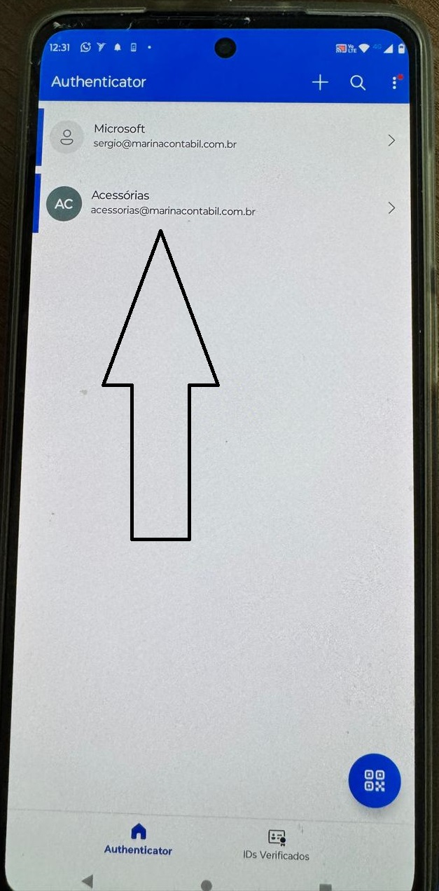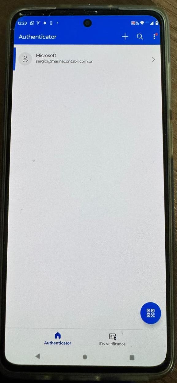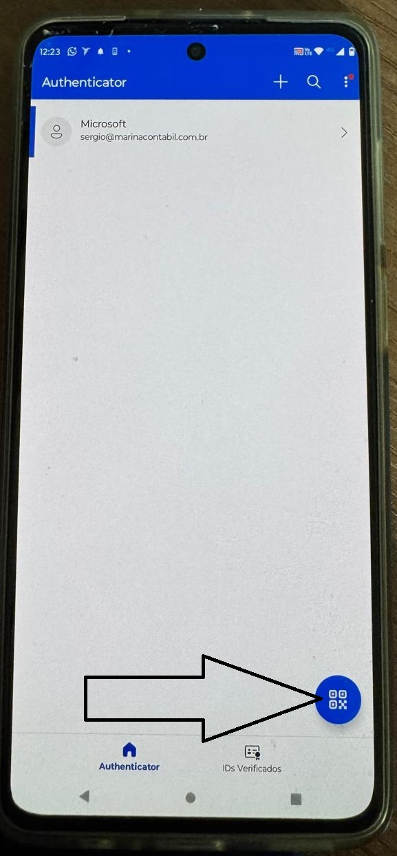 7. No aplicativo Microsoft Authenticator, clique no ícone de leitura de QR Code, conforme ilustrado na imagem abaixo.