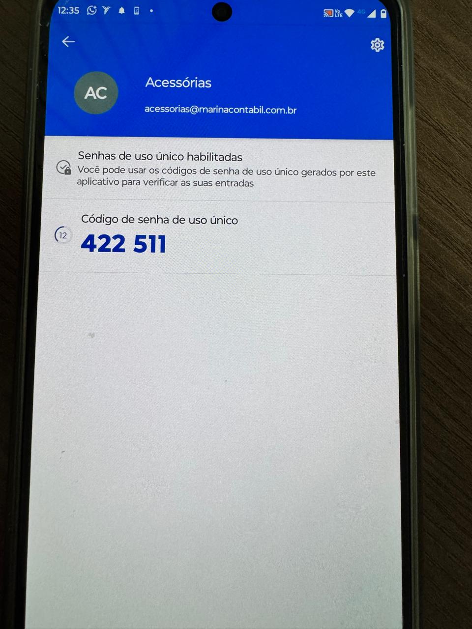 10. Ao clicar no seu e-mail, será exibido um código de seis dígitos (neste exemplo: 422 511). Observe que esse código possui um tempo limitado para expiração.